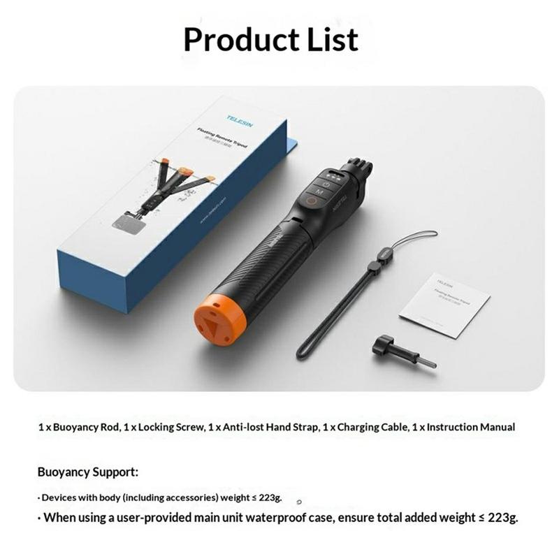Le Telesin S1-TSS-07 est un excellent choix pour les utilisateurs de caméras d'action qui recherchent plus de polyvalence dans un seul accessoire. Au lieu de transporter séparément une poignée, un trépied, une poignée flottante et une télécommande, ce modèle combine plusieurs fonctions utiles dans un design compact. Sa construction étanche, sa capacité à flotter, sa longueur extensible et sa télécommande intégrée le rendent particulièrement pratique pour les voyages, le sport, les vacances et la création de contenu en plein air.