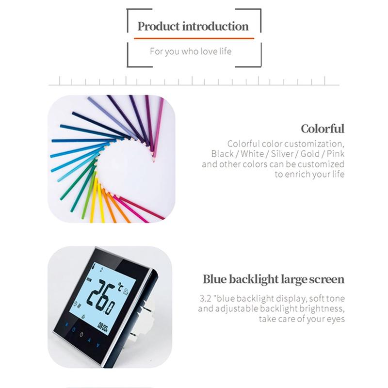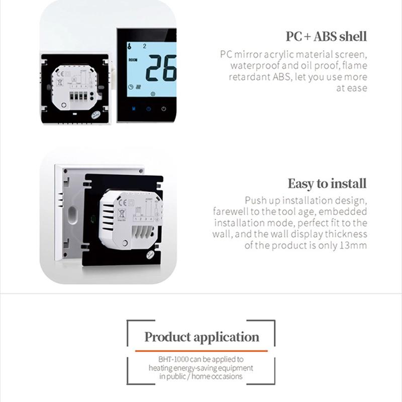 Thermostat intelligent BHT-1000GB pour chauffage au sol électrique, avec écran tactile et affichage LCD