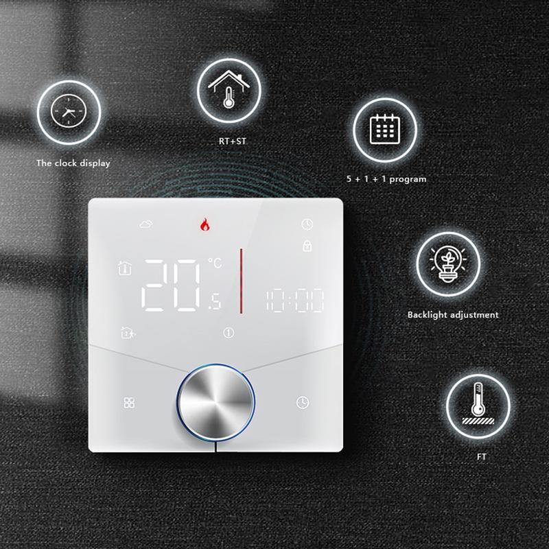 Le thermostat intelligent Tuya BHT-009GCLW est conçu pour vous offrir un contrôle précis et flexible de la température pour le chauffage par chaudière, les saunas et autres systèmes de chauffage compatibles. Grâce à son design fin et moderne, à sa connectivité intelligente et à sa programmation flexible, il contribue à créer un environnement intérieur plus confortable tout en facilitant la gestion de la température. Ce thermostat constitue un choix pratique pour les maisons, les appartements, les hôtels, les espaces de bien-être et autres environnements intérieurs similaires.