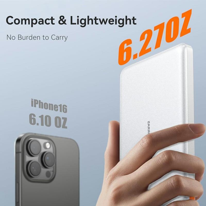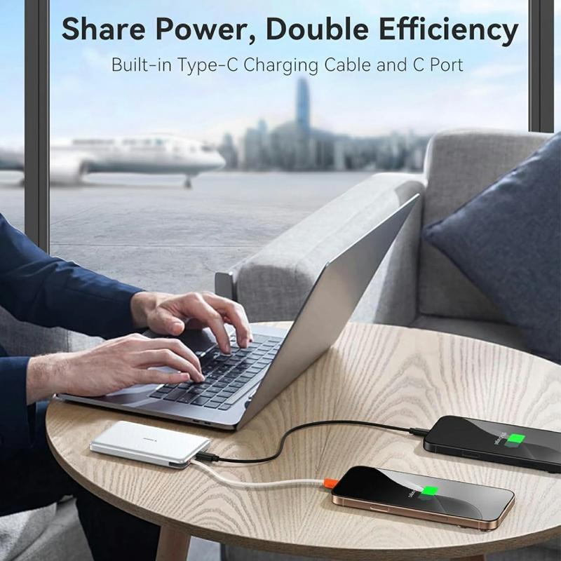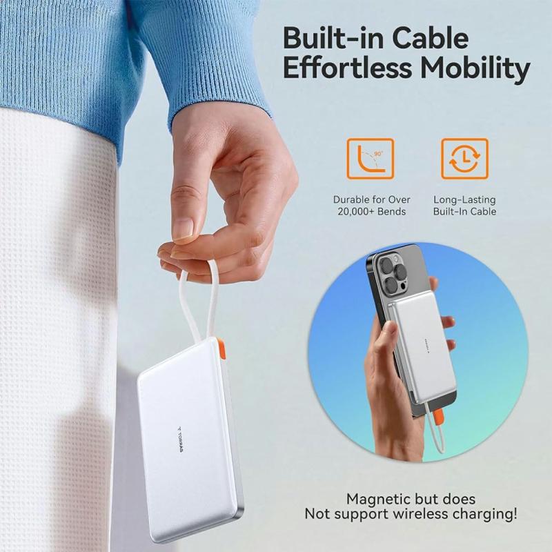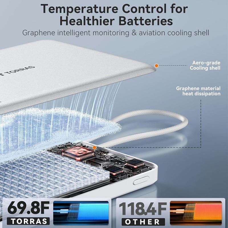 Torras Mini Slim PD Power Bank avec câble USB-C intégré - 22.5W Fast-Charge, 10000mAh