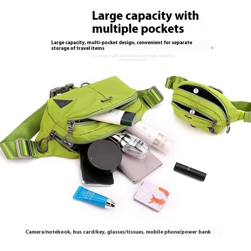 - Flexibilité de portage dans les 3 sens : Portez le sac à la taille, en bandoulière ou sur la poitrine pour un confort personnalisé dans toutes les aventures.