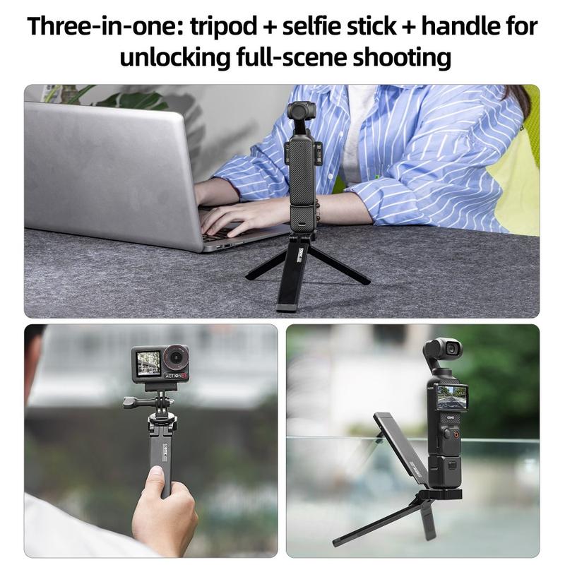 Équipé d'un filetage standard 1/4", le trépied est compatible avec une large gamme d'appareils, notamment la série DJI Pocket, les caméras d'action, les appareils photo compacts et les accessoires. Un adaptateur GoPro est inclus pour plus de polyvalence.