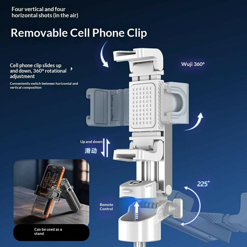 Réalisez de meilleurs selfies, vidéos et contenus en direct grâce au trépied-perche à selfie Bluetooth T13Y. Conçu pour une utilisation quotidienne, cet accessoire compact combine une perche à selfie, un trépied, une pince pour téléphone, une télécommande et deux lampes d'appoint en un seul ensemble pratique.