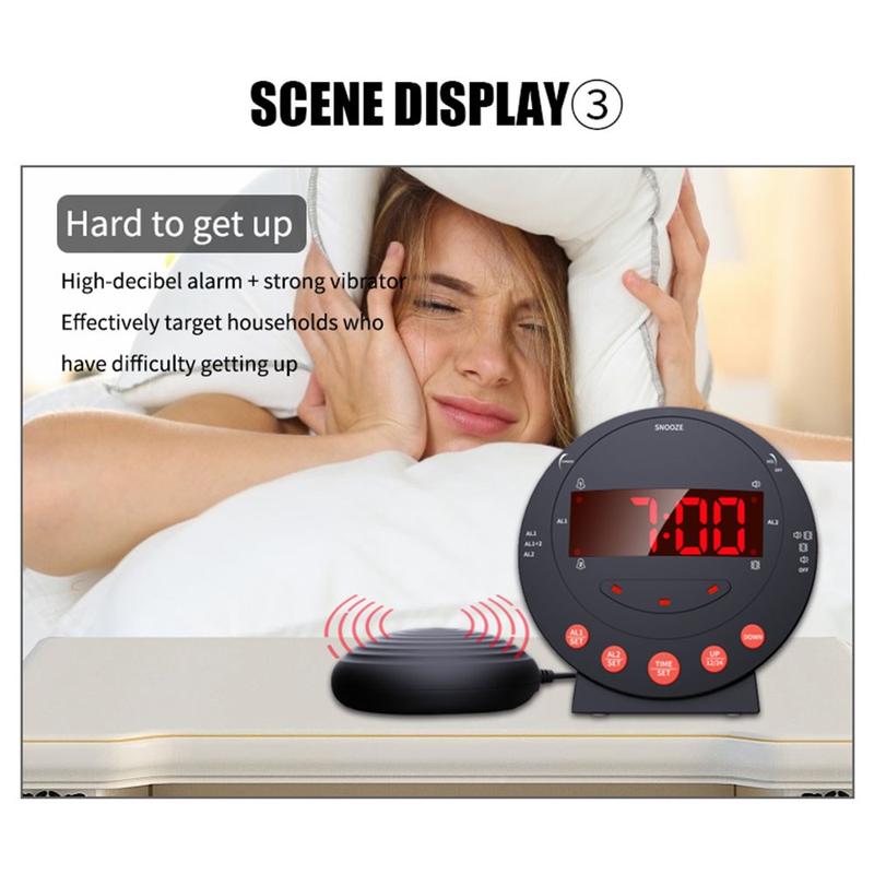 TS-BC600 Réveil vibrant avec affichage 12/24 heures pour sourds, malentendants et personnes âgées - 3x piles AAA (non incluses)