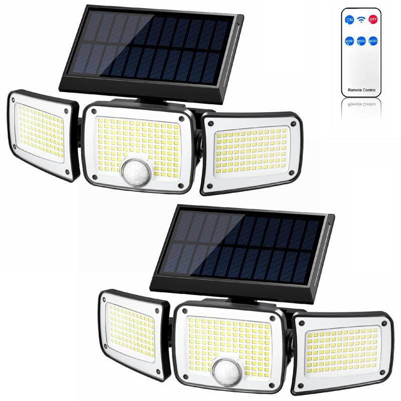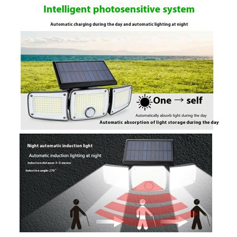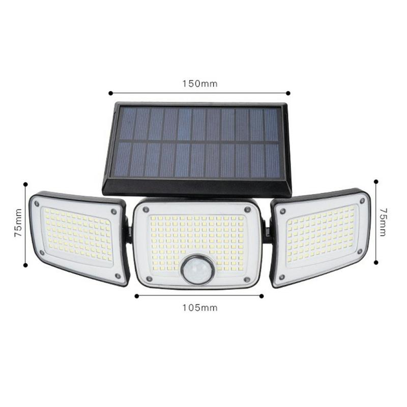 TY10305 Applique solaire à 3 têtes - 280 LED, détecteur de mouvement, lampe d'extérieur étanche IP44