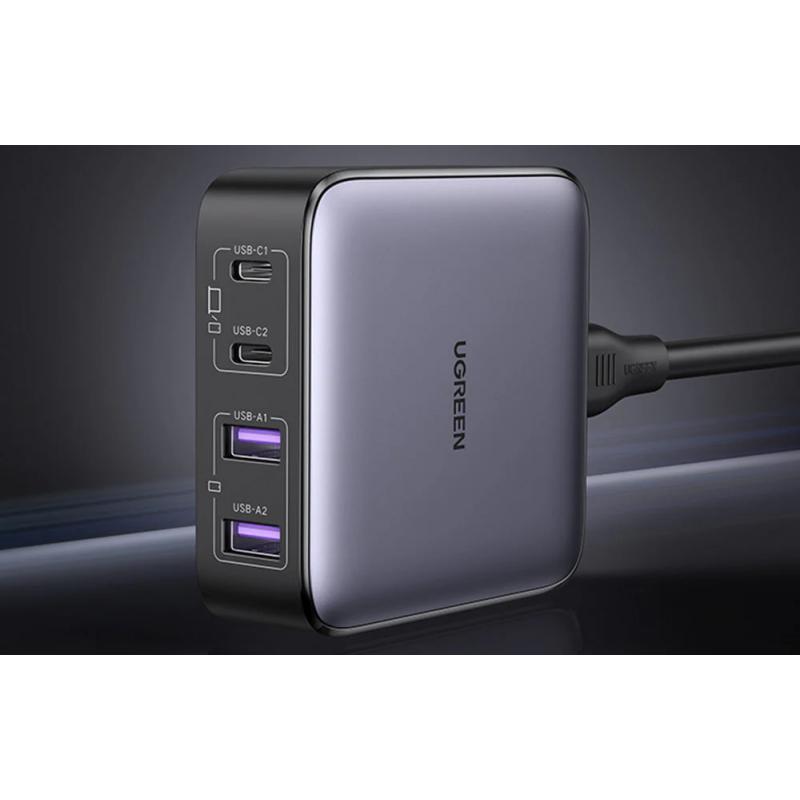 Ugreen Nexode 65W Chargeur de bureau à 4 ports - Dual USB-C PD & Dual USB-A QC Fast-Charge Hub, Compact GaN Design