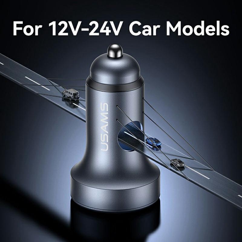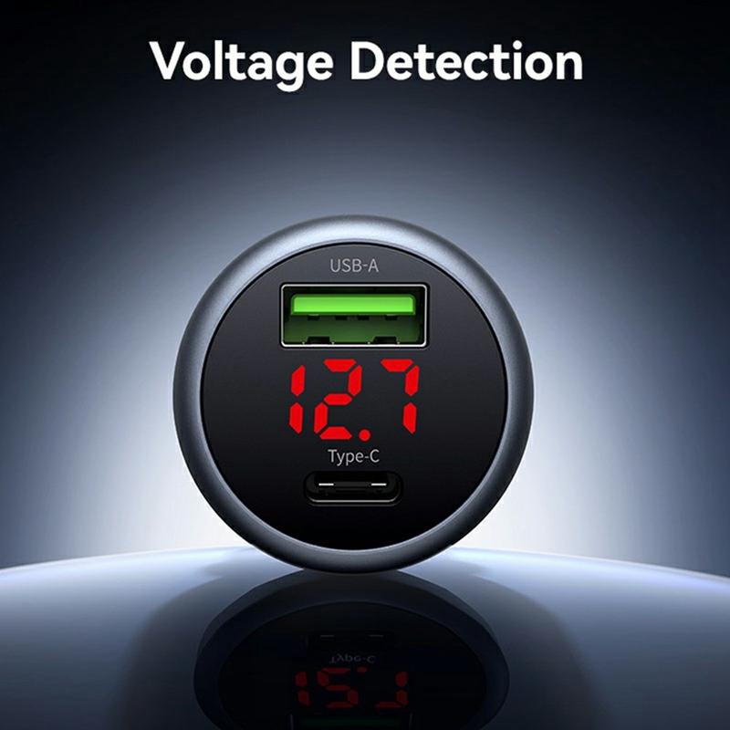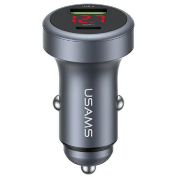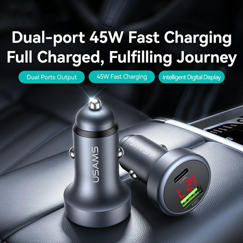 • Usams CC327 C44 Chargeur de voiture à double port - Adaptateur en aluminium à charge rapide 45W avec affichage de la tension