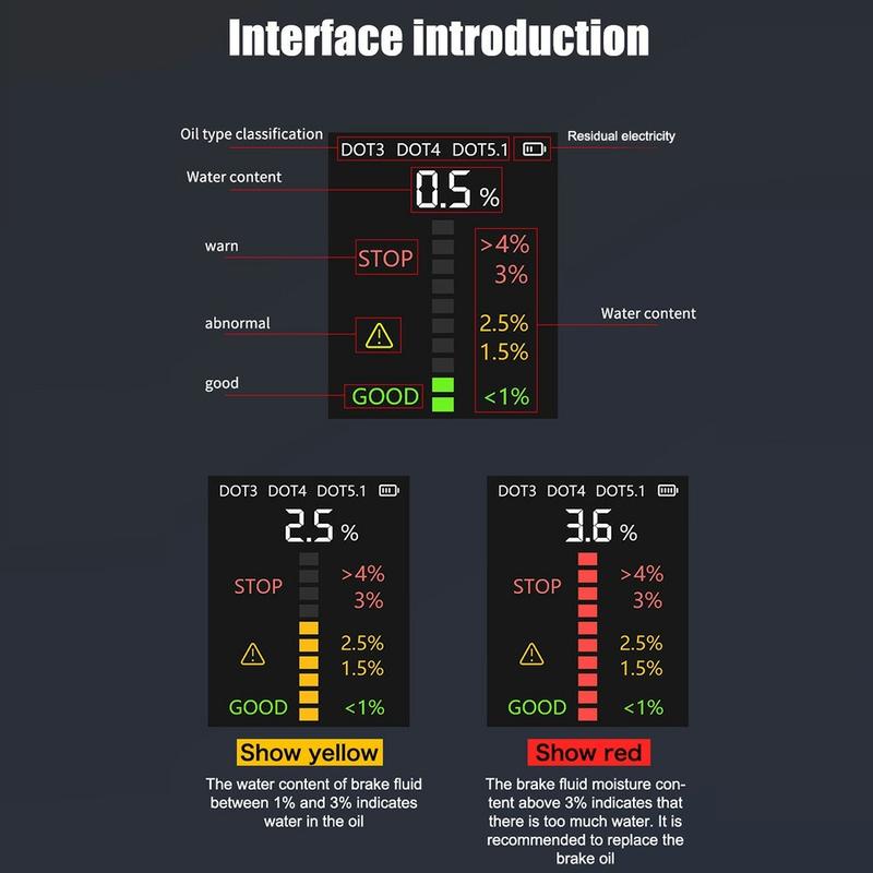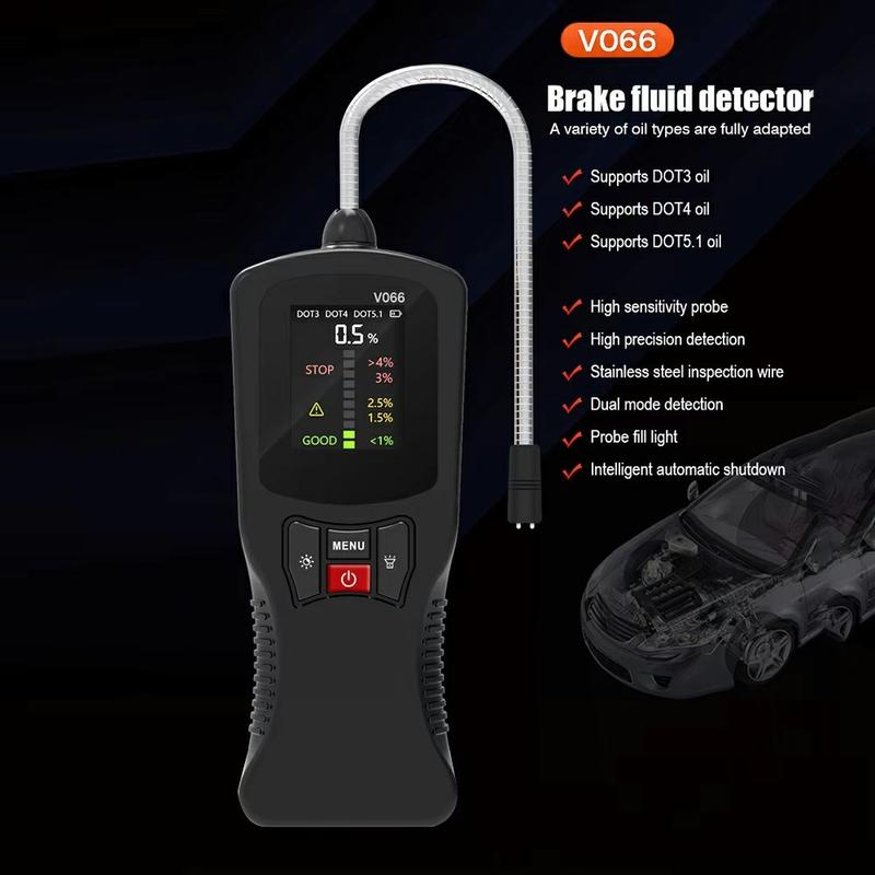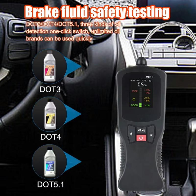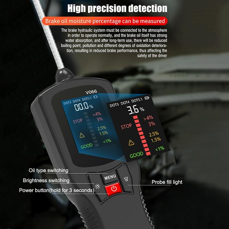 • V066 Testeur de liquide de frein pour le diagnostic automobile - DOT3 DOT4 DOT5.1 Contrôleur de teneur en eau avec écran couleur et sonde haute sensibilité