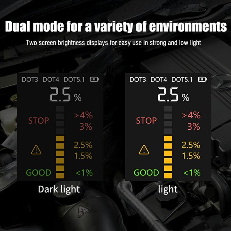 - Contrôle rapide et précis de la teneur en eau des liquides de frein DOT3, DOT4 et DOT5.1
