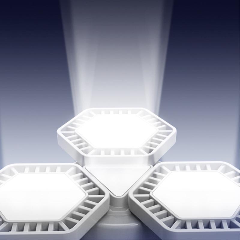- Panneaux triples grand angle - 3 "feuilles" repliables garnies de 126 LED à haut rendement baignent de grandes surfaces d'une lumière uniforme.
