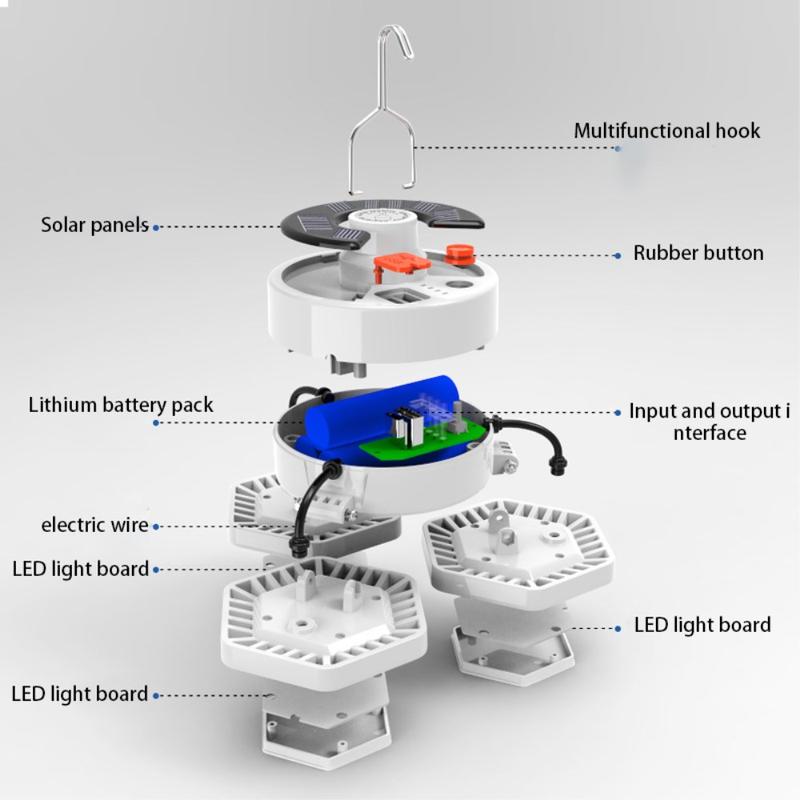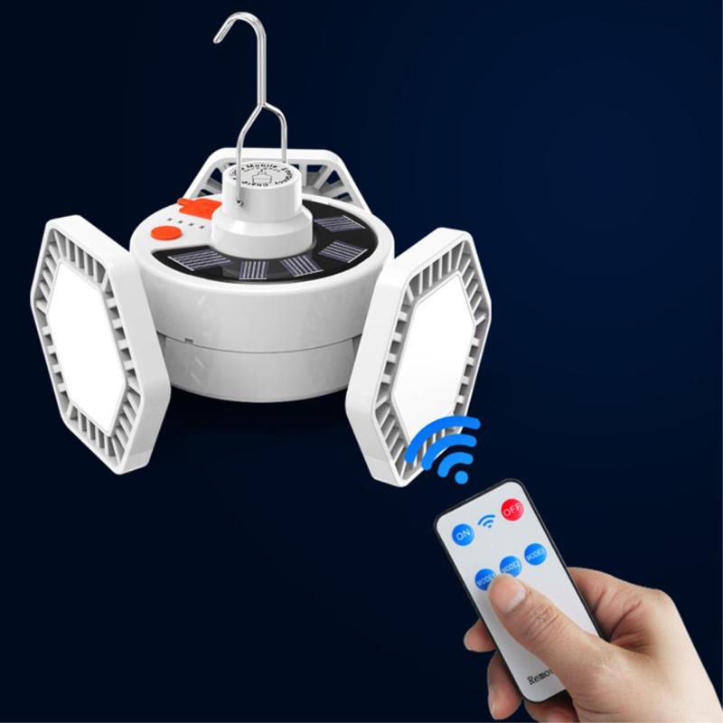 V126 Lanterne de camping solaire - Lampe LED pliante à 3 feuilles et banque d'énergie, recharge USB / solaire, télécommande (126 LED)