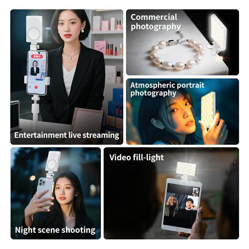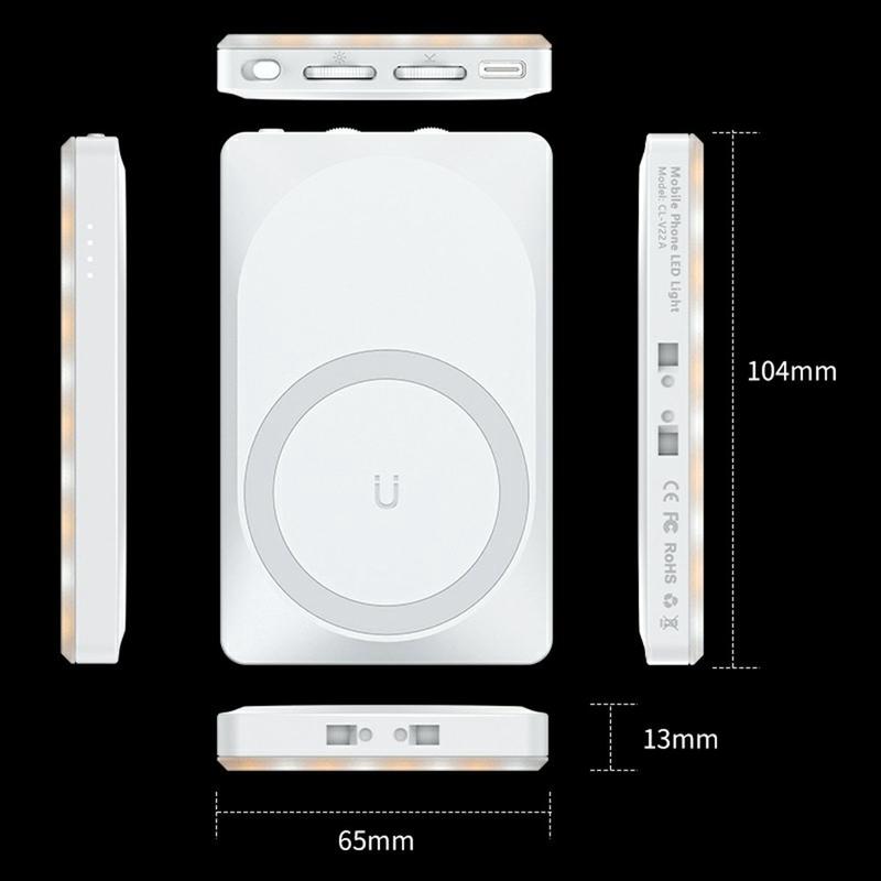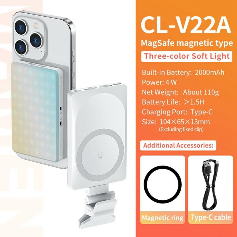Lampe LED magnétique portable V22A 4W - Lampe de caméra rechargeable Type-C de poche pour téléphone et streaming en direct