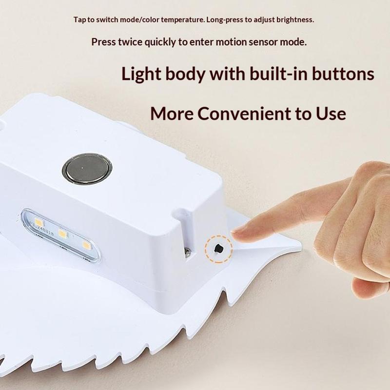 Ajoutez une touche chaleureuse et confortable à n'importe quelle pièce grâce à cette veilleuse RGBW en forme de feuille, conçue pour être décorative tout en vous offrant un éclairage pratique exactement quand vous en avez besoin. Elle combine un détecteur de mouvement et une télécommande pratique, ce qui lui permet de s'allumer automatiquement lorsque vous passez à proximité ou d'être réglée depuis votre lit, votre canapé ou votre bureau. Grâce à son variateur continu et ses 10 options de couleurs, vous pouvez passer d'une veilleuse douce à un éclairage d'ambiance pour des soirées relaxantes, des chambres d'enfants ou un éclairage de couloir.