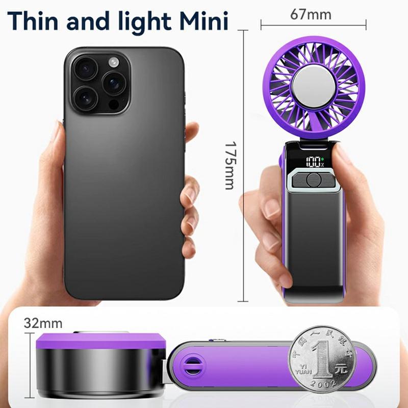 • Ventilateur turbo portable S2 - Ventilateur de poche rechargeable avec 100 vitesses, écran LED et conception 3-en-1 pliable