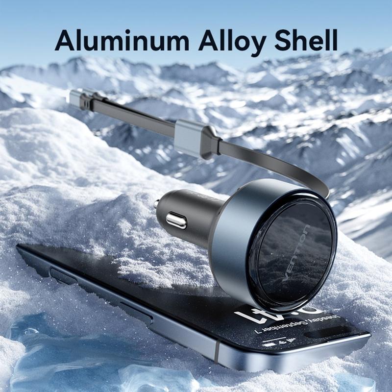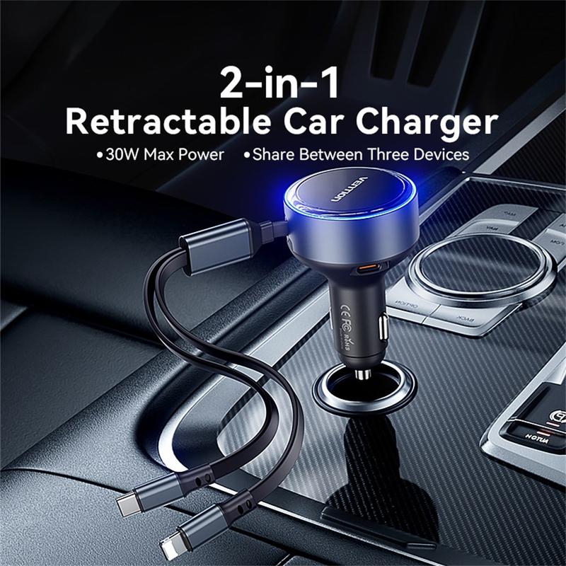 Vention FFOB0 PD Chargeur de voiture à charge rapide 30W avec câbles USB-C et Lightning intégrés