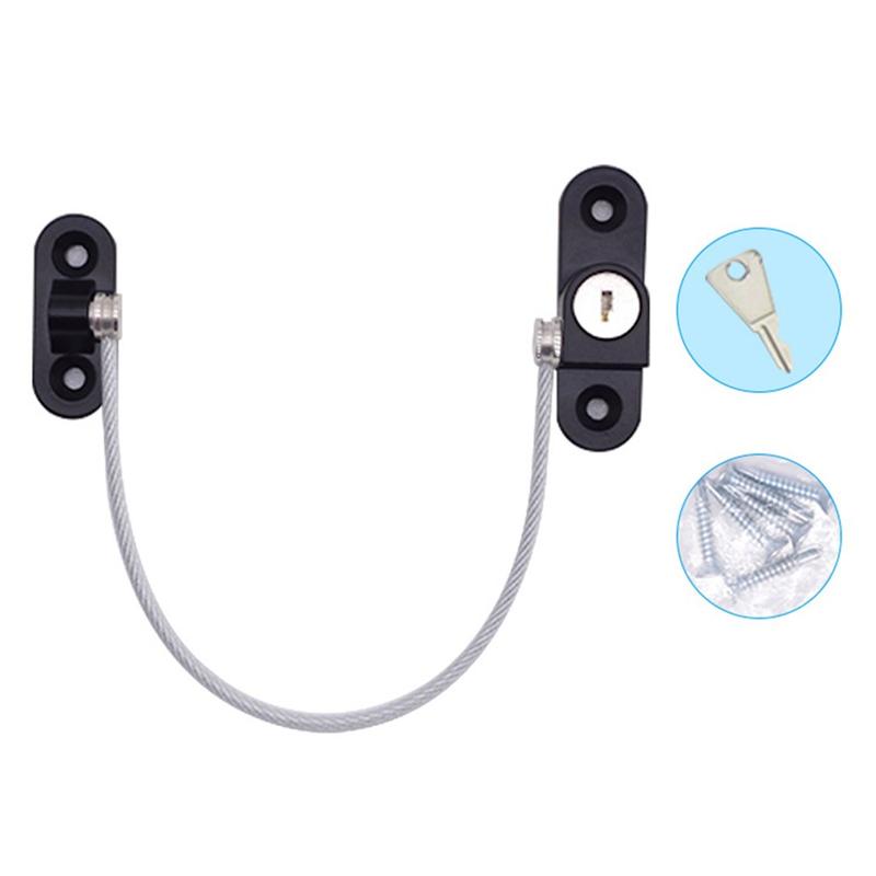 Support de sécurité avec câble pour fenêtres, portes et armoires - Alliage de zinc avec câble en acier