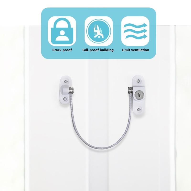 Protégez les enfants curieux et sécurisez vos objets de valeur avec l'antivol FQ5. Le boîtier est en alliage de zinc résistant, tandis que le câble en acier à plusieurs brins résiste à la coupure et à l'arrachement. Montez la base à l'aide des vis fournies, passez le câble dans le loquet correspondant et tournez la clé pour verrouiller. Une fois en place, la porte de la fenêtre, de l'armoire ou du réfrigérateur s'ouvre juste assez pour permettre la ventilation, mais pas assez pour que les petites mains puissent se faufiler à travers.