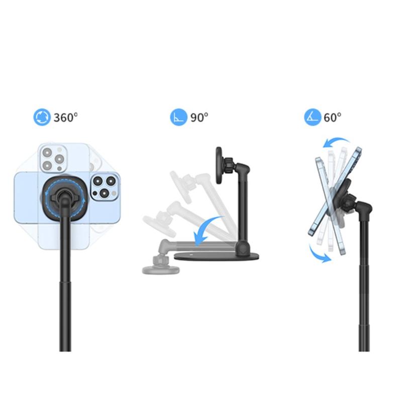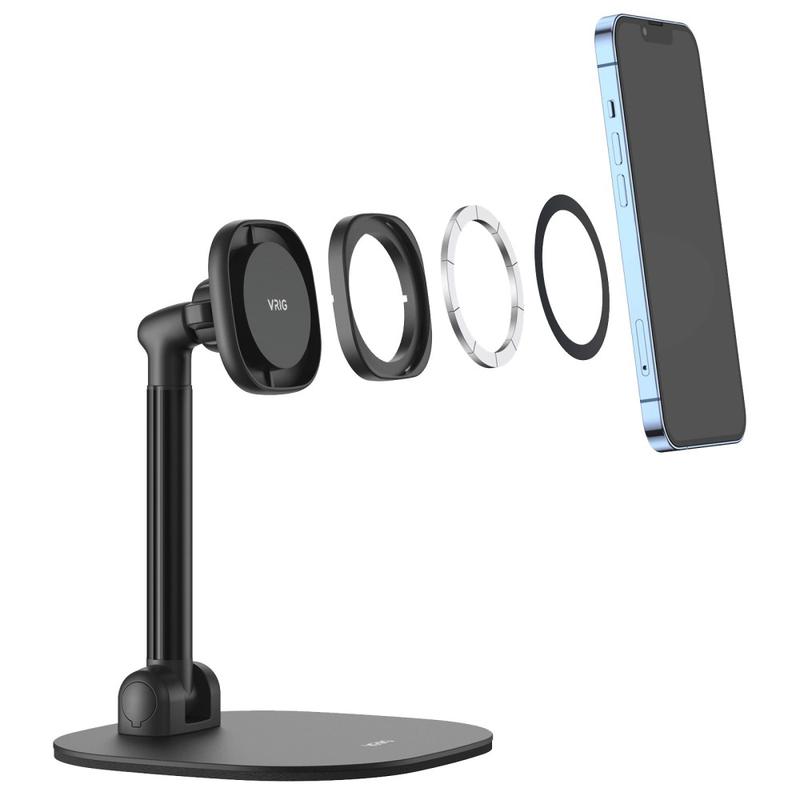 Vrig MG-04 Support de bureau magnétique rotatif pour iPhone 12-17 et étuis MagSafe - Support de téléphone en acier au carbone réglable de 22 à 36 cm