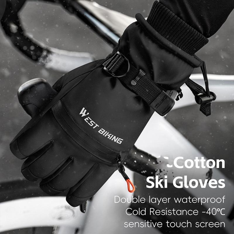 West Biking YP0211271 Gants de ski imperméables - Moufles d'hiver coupe-vent à écran tactile pour le cyclisme avec poche à glissière