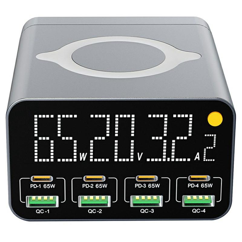 Station de charge de bureau GaN 9 en 1 WLX-M3 80W - Chargeur rapide USB-C/USB multiport avec charge sans fil (prise EU)