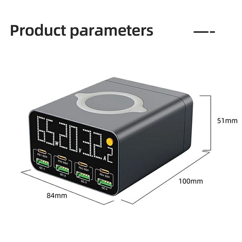 - Ports : 4 × PD, 4 × QC, 1 × charge sans fil