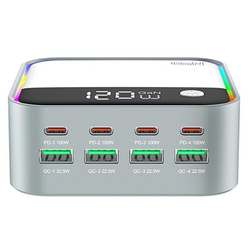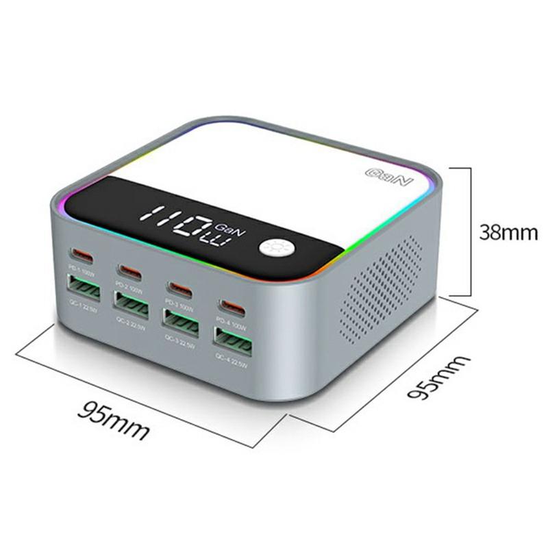 WLX-M8 120W Station de charge de bureau avec éclairage RVB - Chargeur rapide GaN à 8 ports avec 4x USB-C, 4x USB-A, prise EU