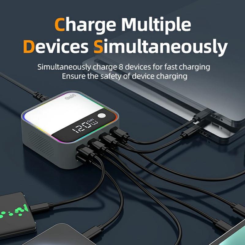 - Chargement multi-appareils de 120W avec 8 ports au total (4 USB-C + 4 USB-A)