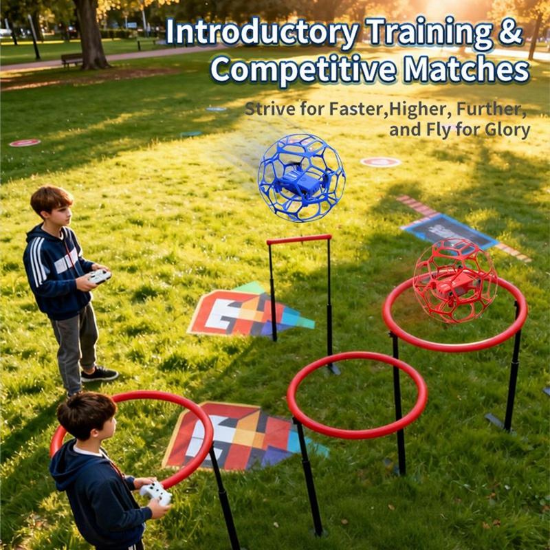 Le drone XKJ K26 de type ballon de football est un quadcoptère volant léger conçu pour des jeux sûrs et passionnants. Sa structure sphérique en filet de protection entoure les hélices, réduisant ainsi le risque de collision et permettant aux enfants et aux nouveaux utilisateurs de drone de jouer à l'intérieur comme à l'extérieur.