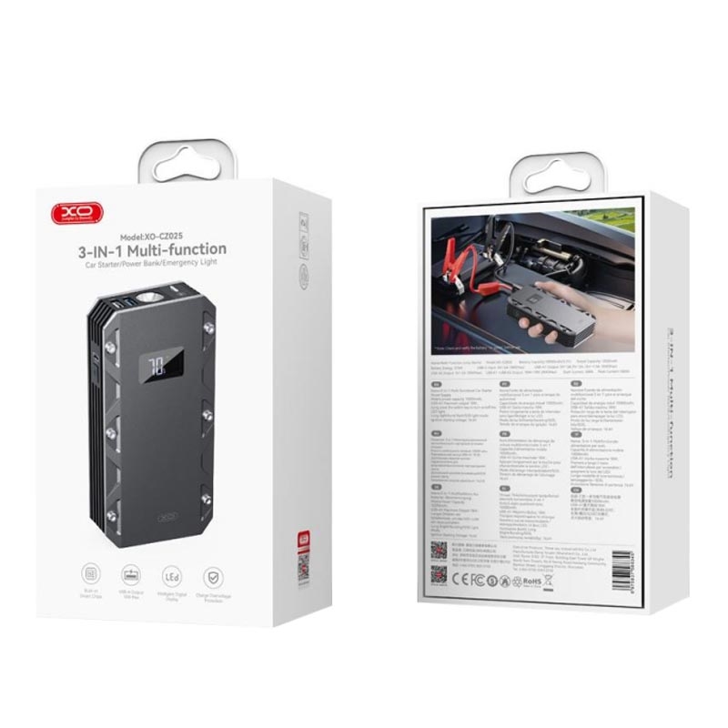 Soyez prêt pour les moments où la batterie est à plat avec le XO CZ025 : une solution 3-en-1 compacte qui combine un démarreur de voiture, une banque d'énergie portable et une lampe de poche LED lumineuse. Conçue pour les conducteurs et les voyageurs de tous les jours, elle fournit une puissance de démarrage fiable pour les véhicules de 12 V et permet de recharger votre téléphone et vos gadgets grâce à deux sorties USB. L'affichage numérique permet de vérifier facilement l'état de la batterie en un coup d'œil, tandis que la lampe de poche multimode (y compris SOS) est parfaite pour les situations de bord de route.