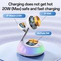 Yesido DS31 Station de recharge magnétique sans fil 3-en-1 15W - Station d'accueil pour téléphone, montre et écouteurs avec veilleuse 7 couleurs (prise EU)