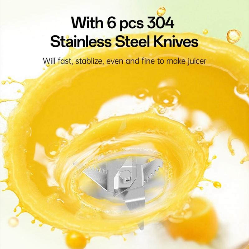 - Couverture des lames à 360° : La géométrie à six lames crée un tourbillon "tornade" qui ne laisse aucun morceau de fruit derrière lui.
