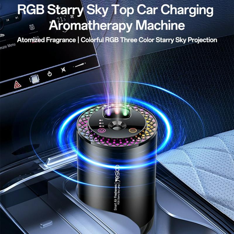 Yesido VC14 Diffuseur d'Aromathérapie pour Voiture - Désodorisant Ultrasonique Intelligent avec Lampe d'Ambiance RGB Ciel Etoilé