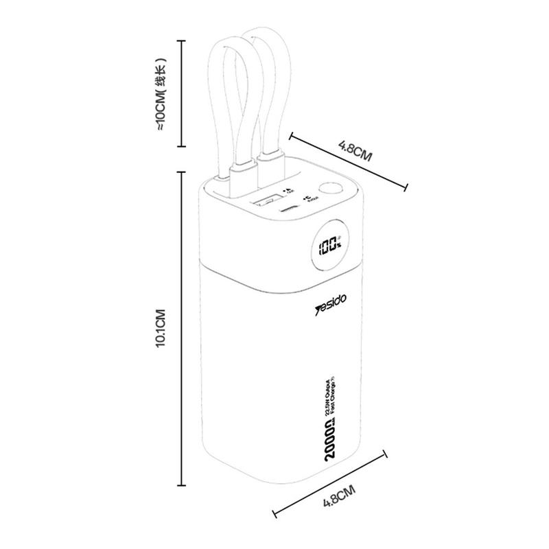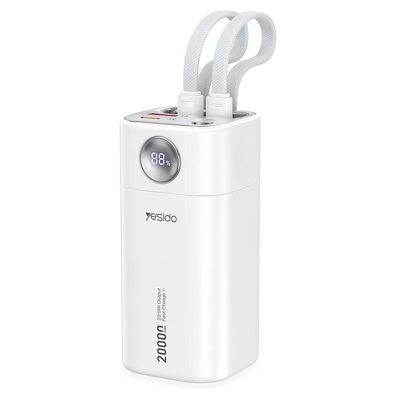 Yesido YP86 20000mAh Banque d'alimentation à charge rapide - 22.5W, affichage numérique et câbles USB-C / Lightning intégrés