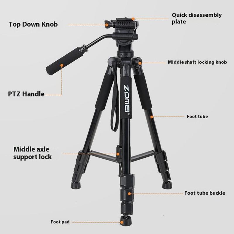 Capturez chaque angle en toute confiance grâce au trépied ZOMEi Q310, un système de support polyvalent et robuste pour les appareils photo et les smartphones. Avec son cadre en alliage d'aluminium, sa tête fluide et son réglage en hauteur, ce trépied est parfait pour la photographie, la vidéographie, la diffusion en direct et les voyages.