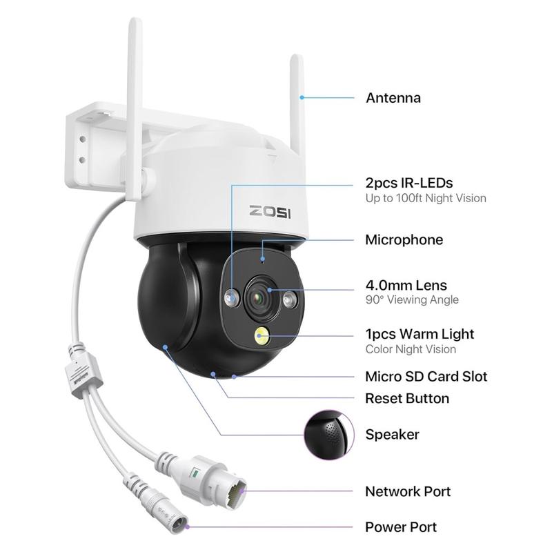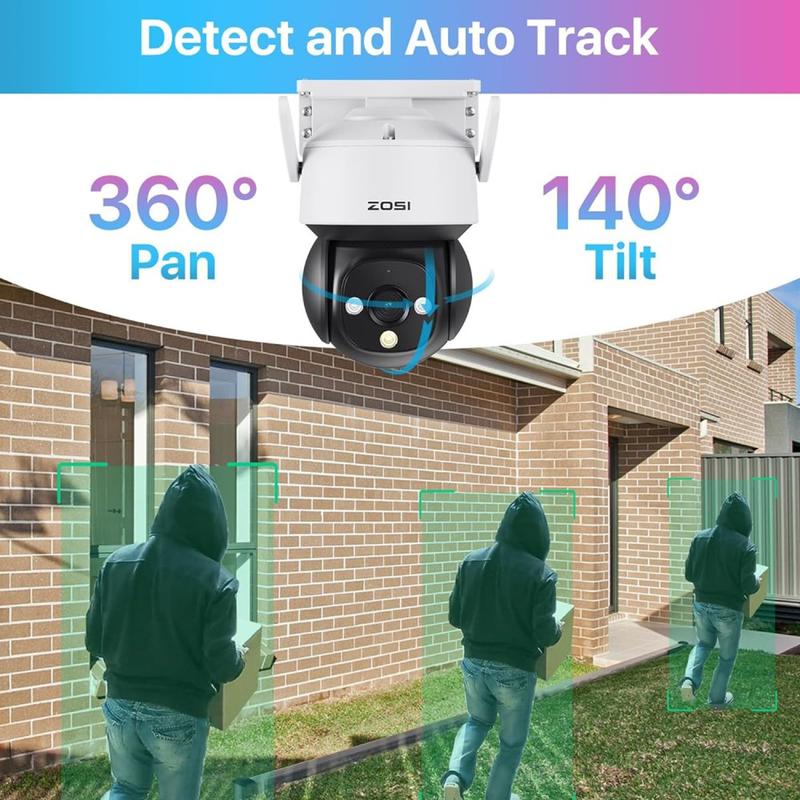 Sécurisez de grandes zones de jour comme de nuit avec une seule caméra compacte et résistante aux intempéries. La ZOSI C290SE combine une clarté de 4 mégapixels, un contrôle PTZ complet, une vision nocturne en couleur et un système audio bidirectionnel intégré, afin que vous puissiez voir, entendre et parler de n'importe où.